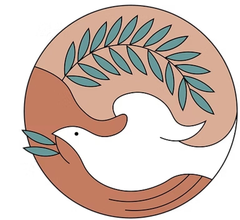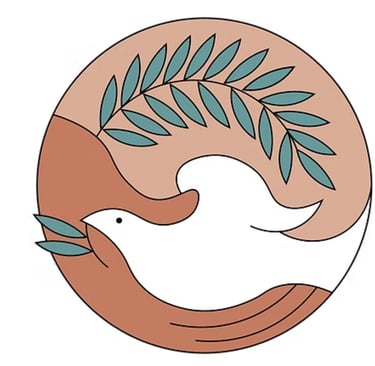 For the final logo, earth tone colors were selected: terracotta, slate green, and sandy brown. The olive branch was selected to move in a clockwise direction, creating opposing visual flows. This creates a sense of balance and movement: the dove moves against the flow of the other elements, and is directly met by a warm, nurturing hand ready to uplift it. These choices generate a sense of gentle optimism and perseverance through personal struggles of mind, body, and spirit.